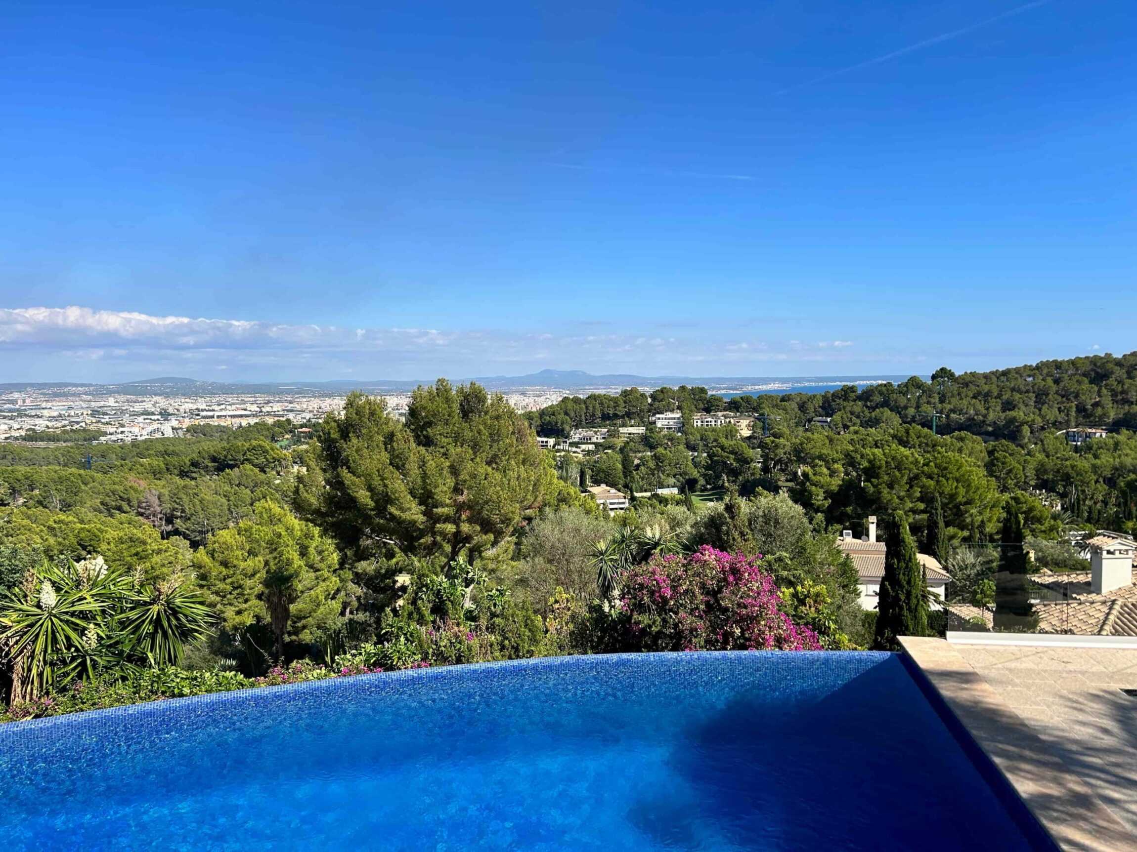 This impressive traditional villa is located in the exclusive area of Son Vida on a plot of around 2,000 m2. It was built in 1999 to the highest quality standards for private use. With a living area of around 623 m2, it offers breathtaking views of the sea and the bay of Palma. A wide driveway leads to the majestic entrance area. The first floor comprises a spacious living room, two dining areas, a spacious kitchen, various storage rooms, a guest WC and a guest bedroom with its own bathroom and separate access. There is also a large, covered terrace here. The first floor presents an outstanding master bedroom with dressing room and en-suite bathroom, complemented by two additional double bedrooms, each with its own bathroom. There is also a further multifunctional room on this floor. Captivating sea views can be enjoyed from all rooms. Additional features include: Air conditioning with heating/cooling function, a carport for two vehicles, storage rooms, marble floors, double insulated windows and a fully finished basement.