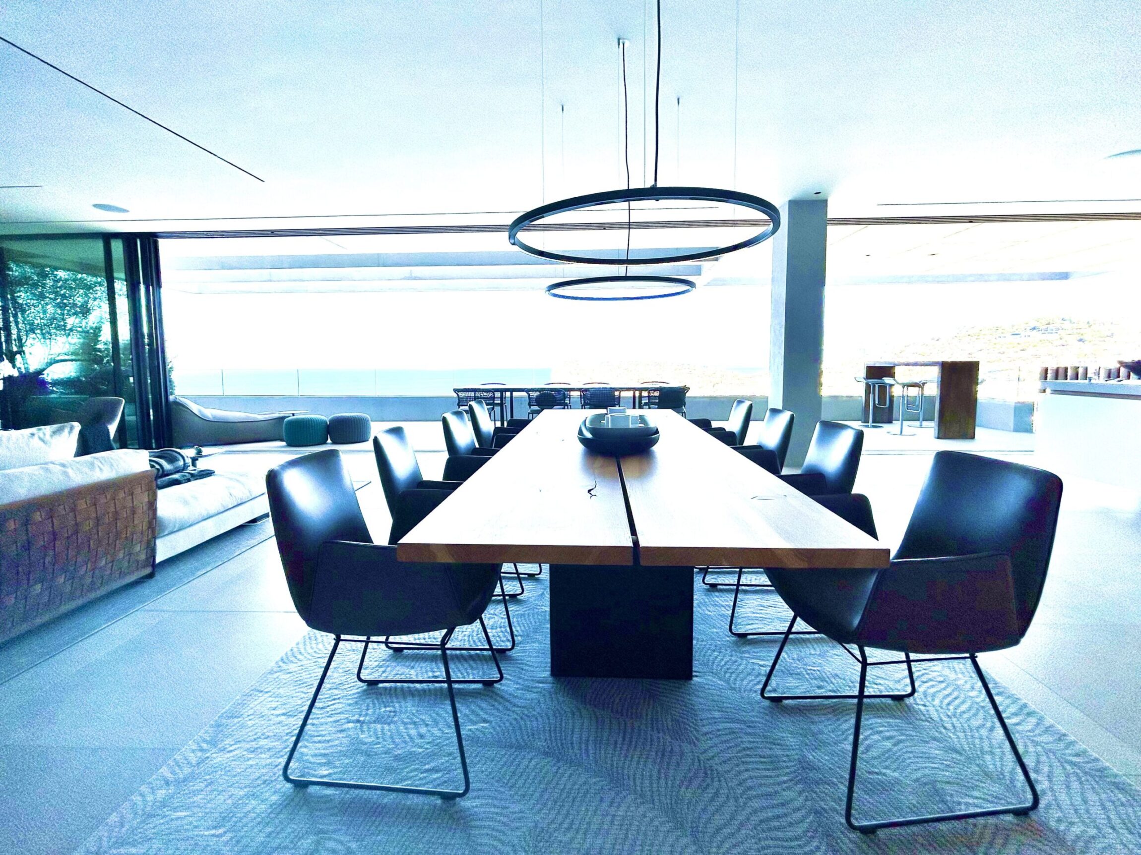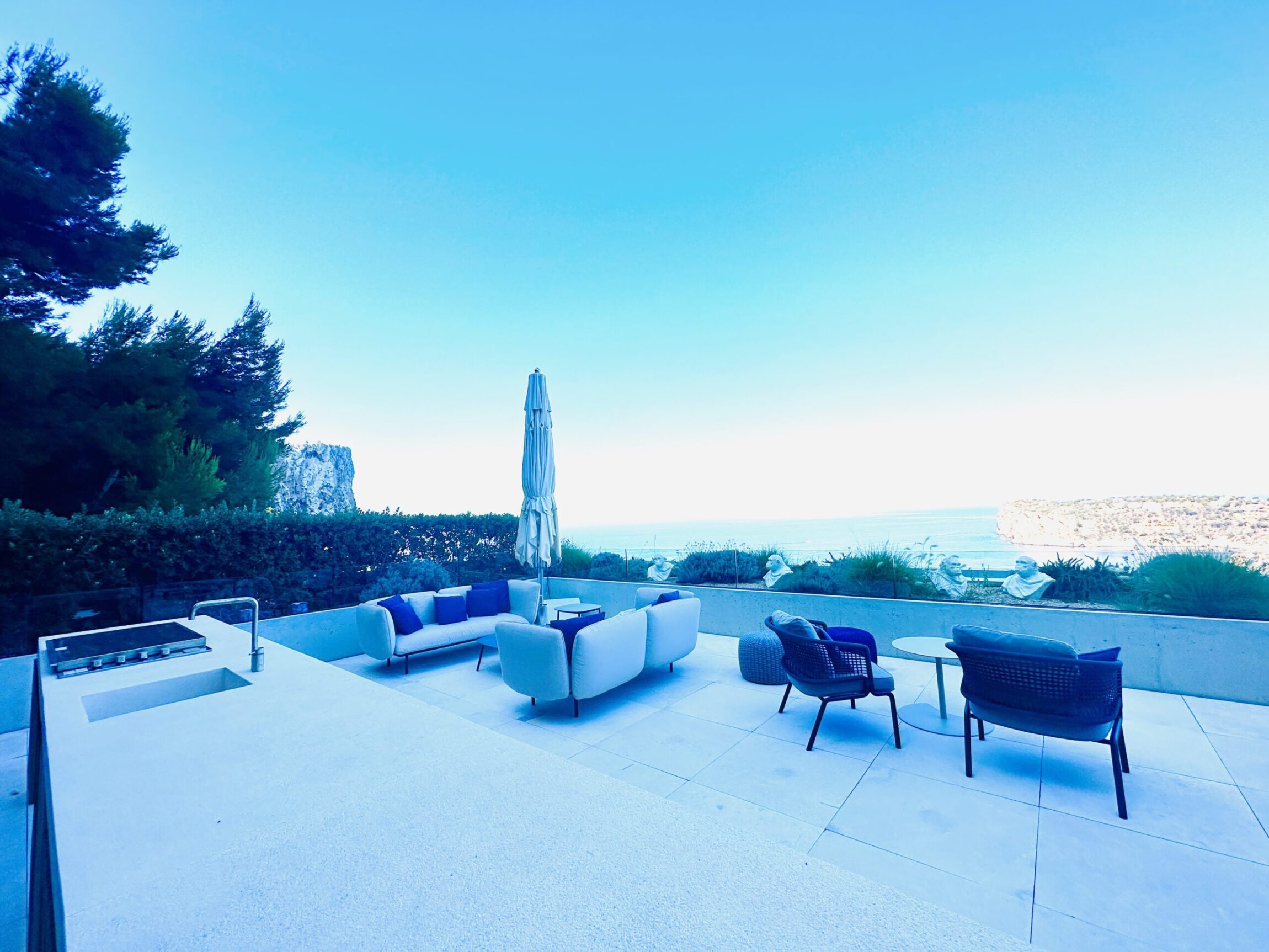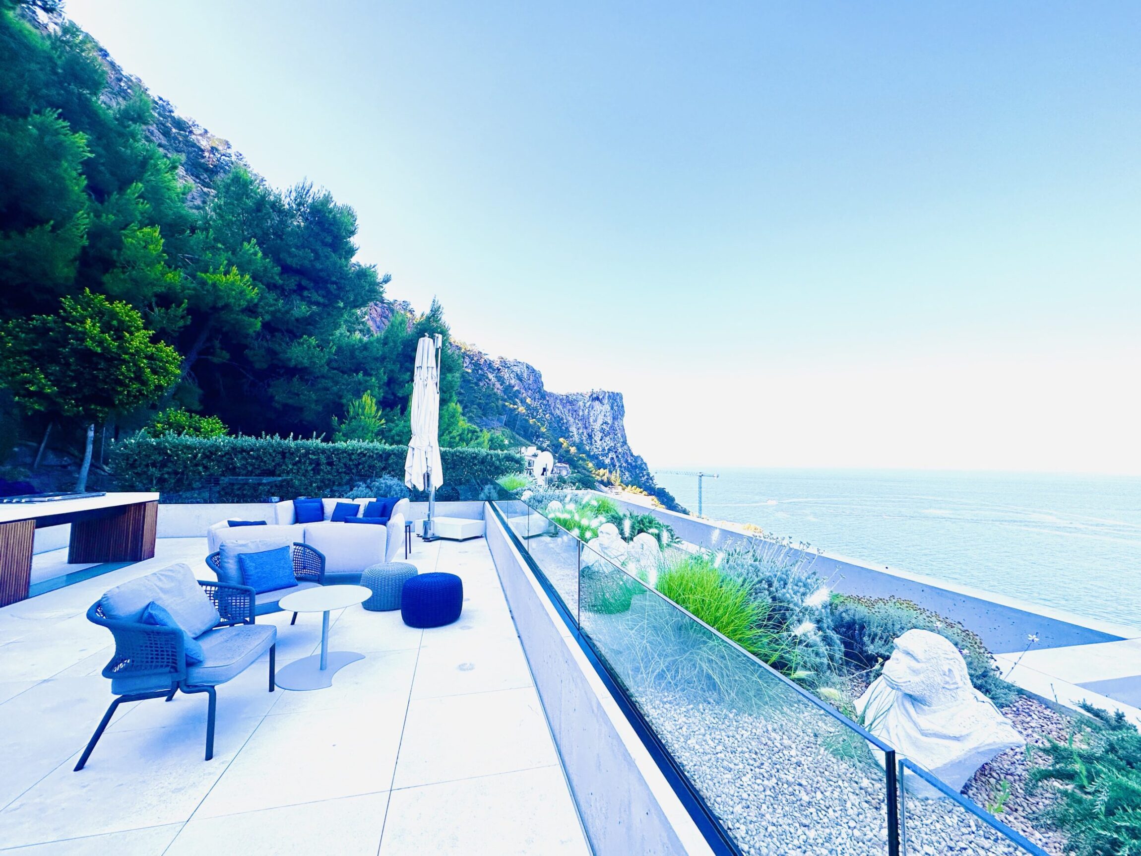 The dramatic design of this elegant, modern villa is built into the cliff face on six levels. The design focuses on the exceptional ocean views, which are a highlight on every floor. The villa is built on six floors, with five floors topped by a stunning rooftop terrace with fully equipped outdoor kitchen and grill, dining and outdoor lounge area surrounded by natural plantings. The second floor features 4 bedrooms, all with bathrooms, including a master suite that leads to a large covered/open terrace with spectacular ocean views. All bedrooms have hardwood floors and en-suite bathrooms. Downstairs, the main living area features natural stone floors that accentuate the open floor plan and create a variety of areas including a living room with built-in fireplace, designer kitchen and dining area. In the basement, there is easy access from the street to a 3-car garage, a mechanical mechanical room, the elevator that connects all floors, and a room that would be ideal as a TV/cinema room or a separate staff apartment. All appliances are of the highest quality and feature the latest technology: a fully equipped designer kitchen with Miele and Bora appliances, a smart-home home automation system, BOSE speakers connected to a SONOS system throughout the villa.