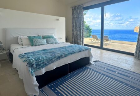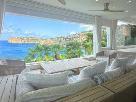 Diese stilvoll modernisierte Villa mit spektakulärem Meerblick befindet sich in der begehrten Wohnlage Cala Llamp in Port Andratx, einer der exklusivsten Gegenden im Südwesten Mallorcas. Durch ihre erhöhte Position – mehrere Meter über Straßenniveau – bietet sie maximale Privatsphäre sowie einen unvergleichlichen Blick auf das Meer und traumhafte Sonnenuntergänge.
