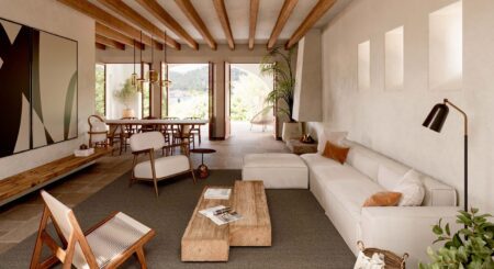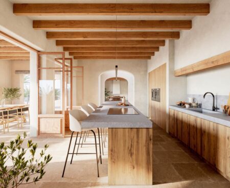 Die Villa wird mit den edelsten Materialien Mallorcas und feinster internationaler Handwerkskunst errichtet – Stein, Glas, Holz und Naturfarben schaffen eine Atmosphäre von Ruhe, Raffinesse und Geborgenheit.