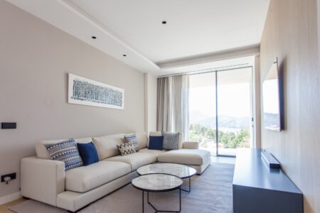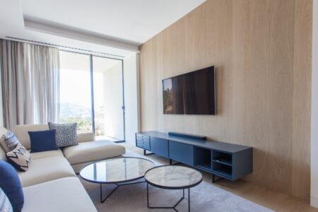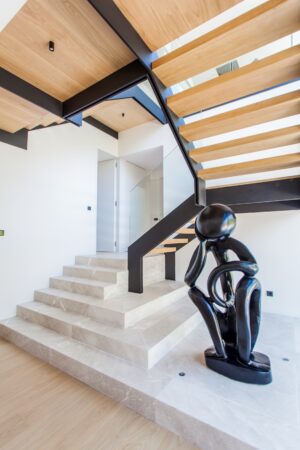 Die Villa selbst ist ein architektonisches Meisterwerk, das moderne Eleganz und mediterranen Charme nahtlos verbindet. Jeder Aspekt der Villa wurde mit größter Sorgfalt gestaltet, um höchsten Komfort und Raffinesse zu bieten und eine Oase der Ruhe zu schaffen. Die geräumigen und geschmackvoll eingerichteten Wohnbereiche sind mit hochwertigen Möbeln ausgestattet und stilvoll akzentuiert, was eine Atmosphäre von raffinierter Luxus schafft.