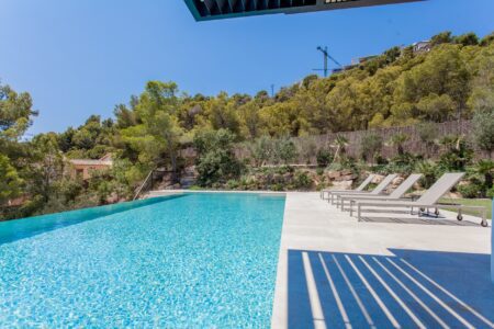 Diese moderne Villa, eingebettet in eine malerische Landschaft, bietet einen unvergleichlichen Rückzugsort in unmittelbarer Nähe des Naturhafens von Port Andratx, einem prominenten Fischer- und Yachthafen im beliebten Südwesten Mallorcas. Die auf einer Anhöhe gelegene Premium-Villa bietet einen atemberaubenden Panoramablick auf den Hafen, das Mittelmeer und die idyllische Umgebung.