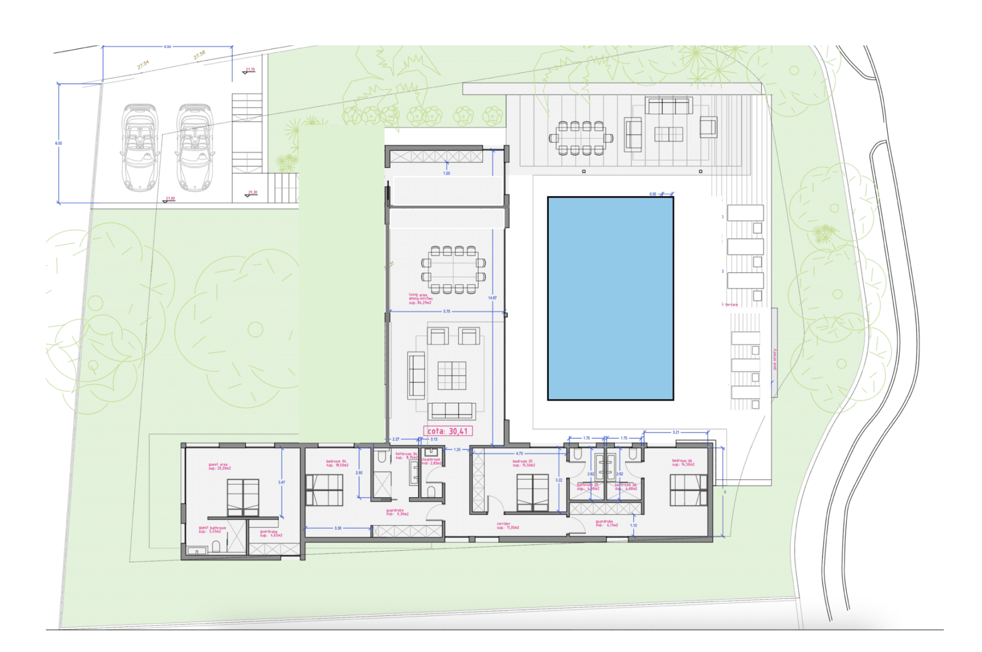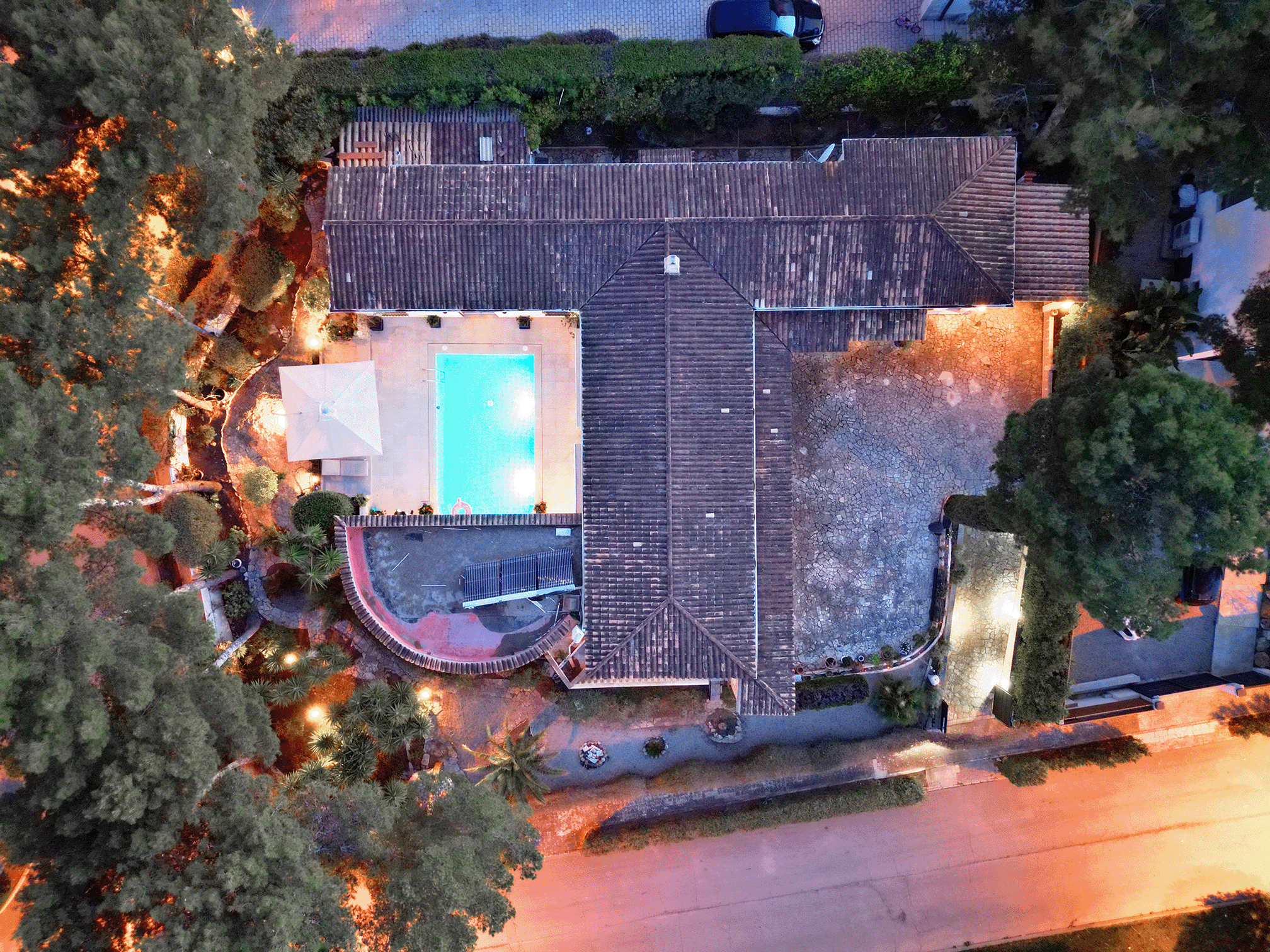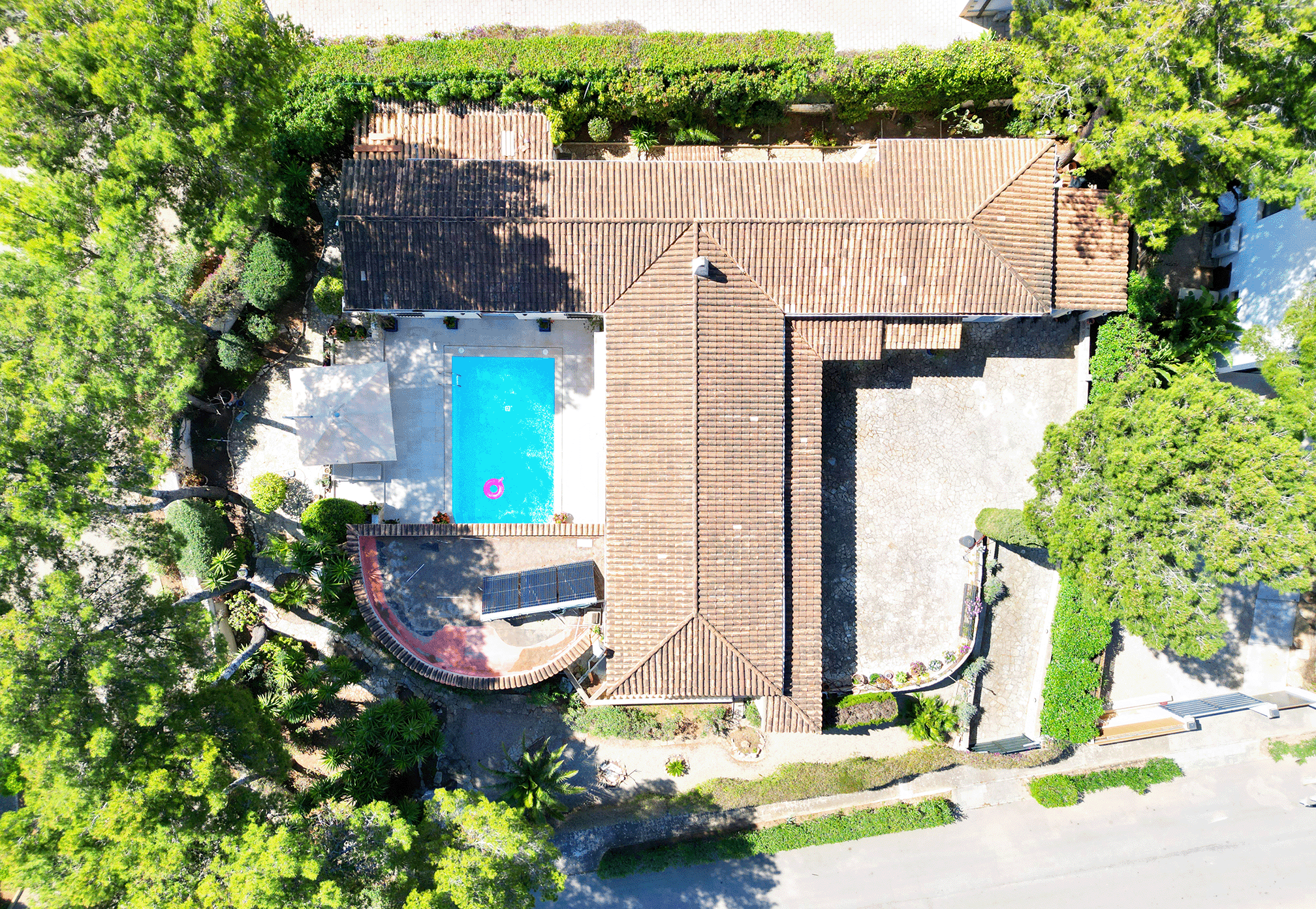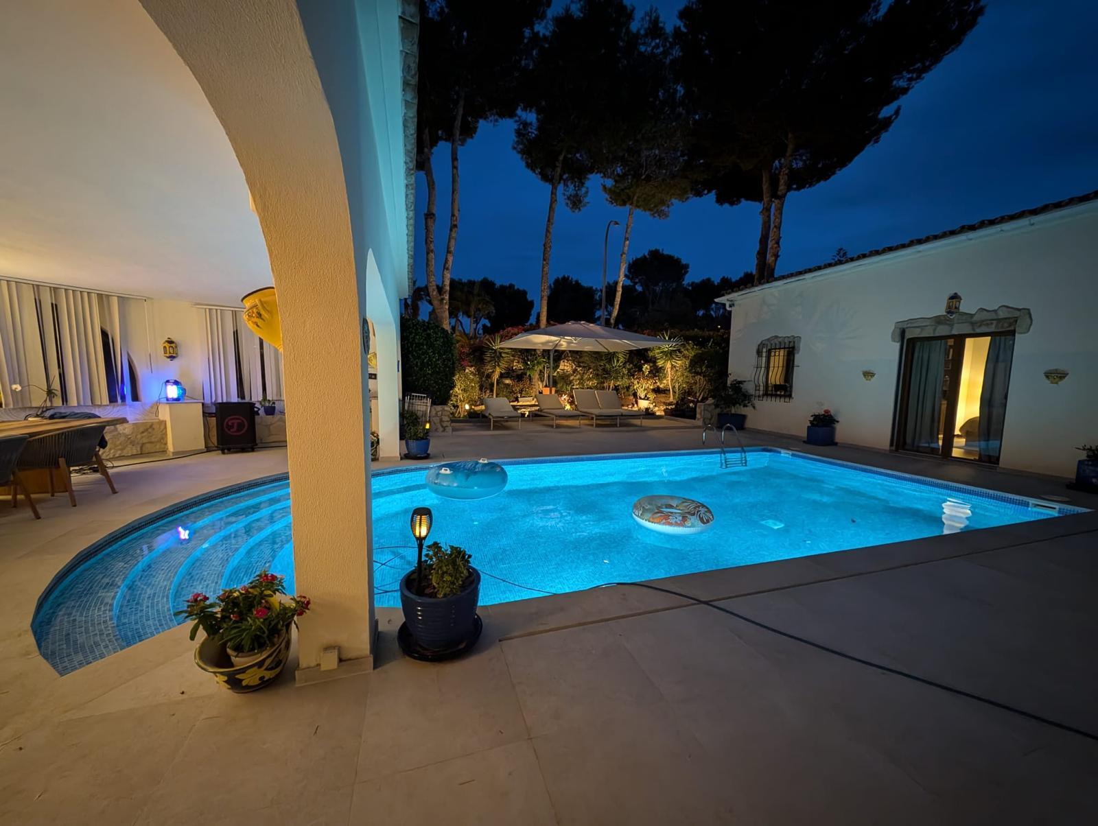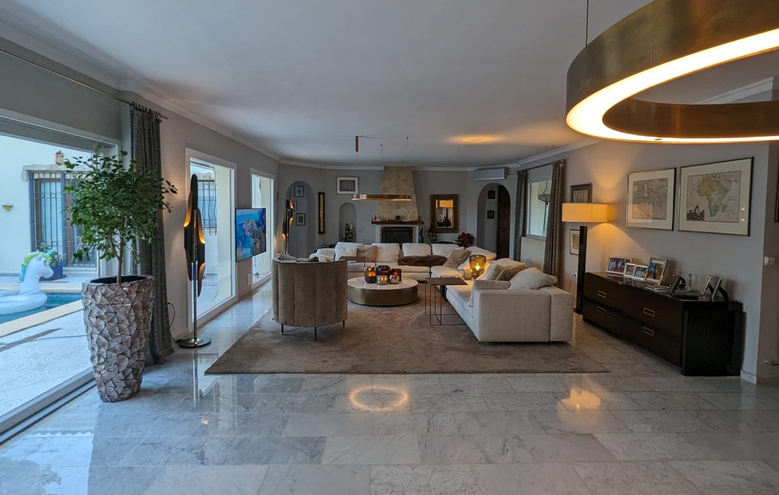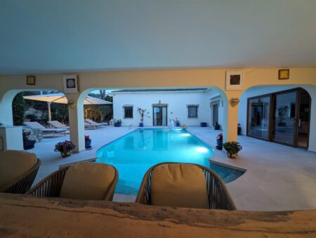 Die Wohn- und Nutzfläche von rund 350 m² verteilt sich auf großzügig geschnittene, lichtdurchflutete Räume. Der Außenbereich wird um einen großen Pool, Freizeitflächen sowie einen Carport mit Stellplätzen für zwei Fahrzeuge ergänzt. Die Ausstattung und Gestaltung verbinden mediterranen Charme mit modernem Wohnkomfort.