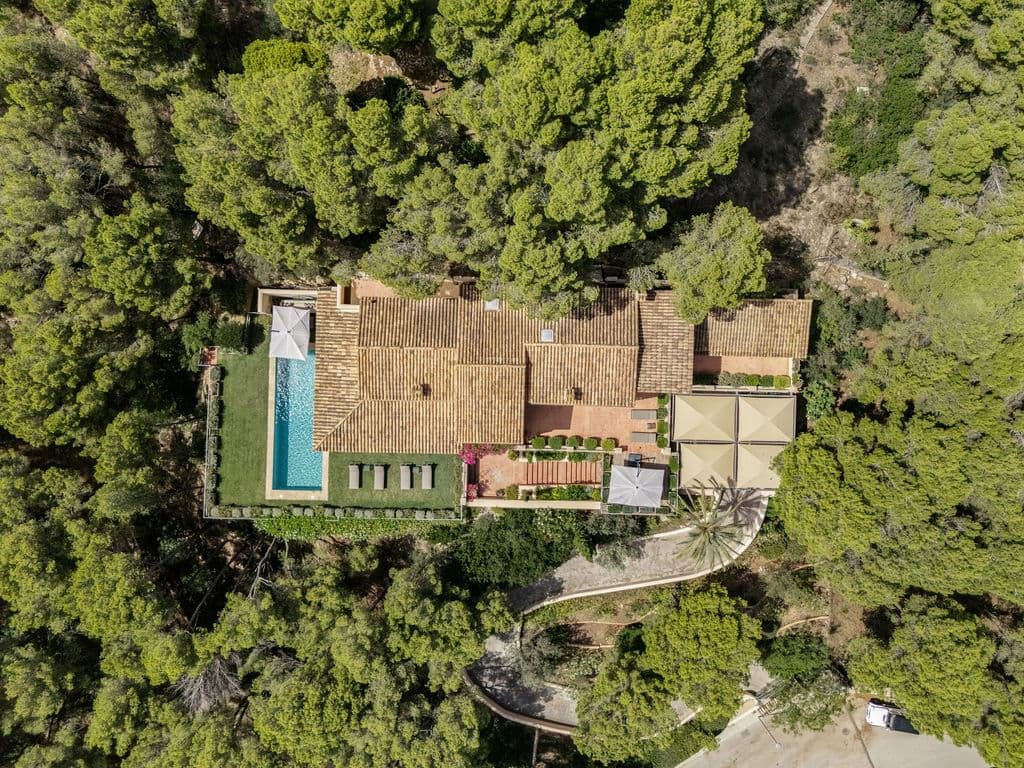 Das 2002 erbaute Anwesen überzeugt mit durchdachter Architektur, einem separaten Gästehaus, weitläufigen Terrassen, Infinity-Salzwasserpool und einem mediterran angelegten Garten mit spektakulärem Meerblick.
