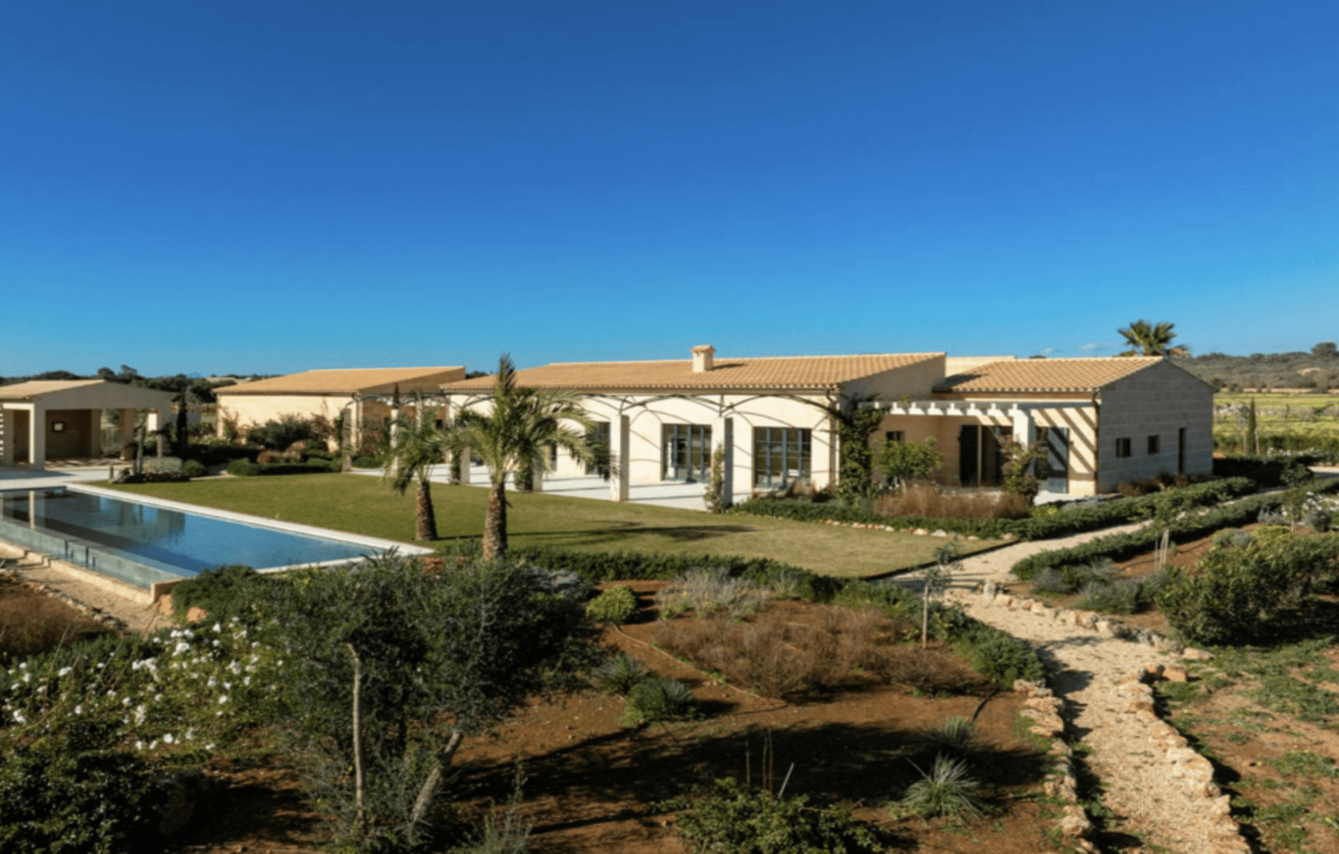 In exklusiver und diskreter Lage, nur wenige Autominuten vom Yachthafen und dem Naturstrand Es Trenc entfernt, befindet sich das prestigeträchtige Anwesen Sòl Roig. Die Finca liegt eingebettet in eine über 32.000 m² große, private Grundstücksfläche und ist über eine separate Privatstraße erreichbar – absolute Privatsphäre garantiert.