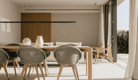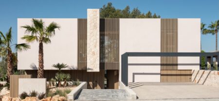 Projekt COR ist eine moderne Villa im kubistischen Stil, gelegen in der aufstrebenden Wohnsiedlung San Marçal (Gemeinde Sa Cabaneta / Marratxí), nur 10 Minuten von Palma de Mallorca entfernt. Das Design kombiniert erdige Farbtöne, natürliche Materialien und Holzfassadenelemente, um sich harmonisch in die mediterrane Umgebung einzufügen.