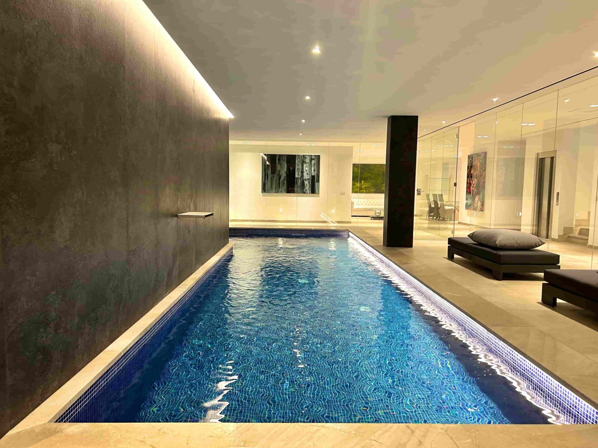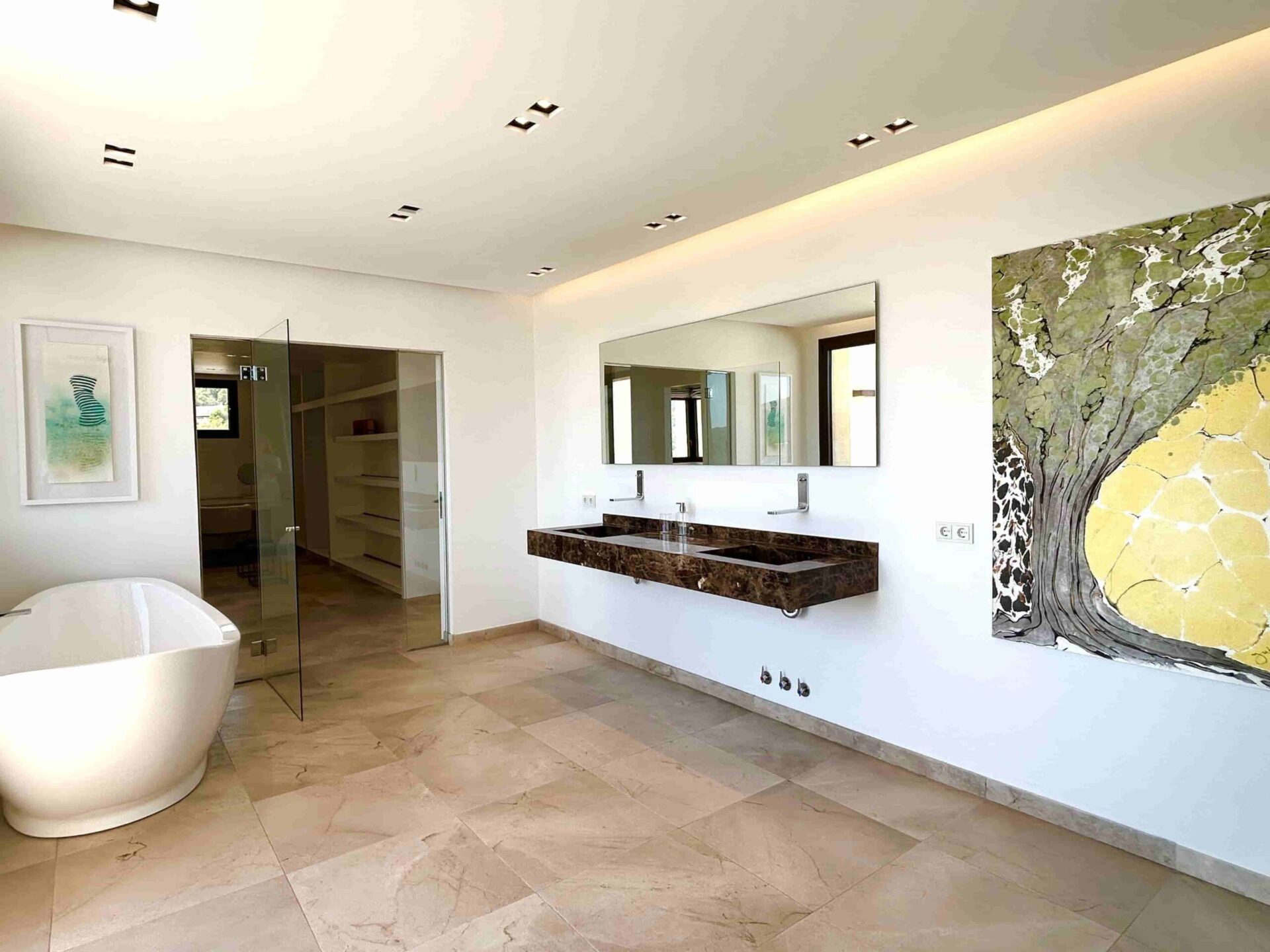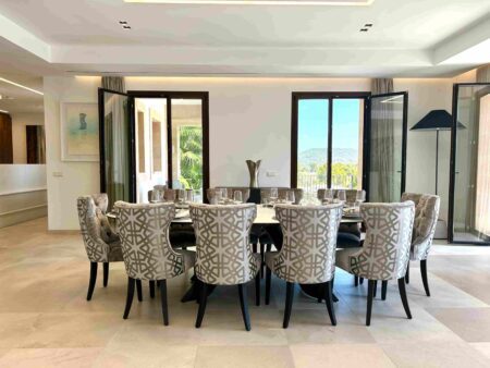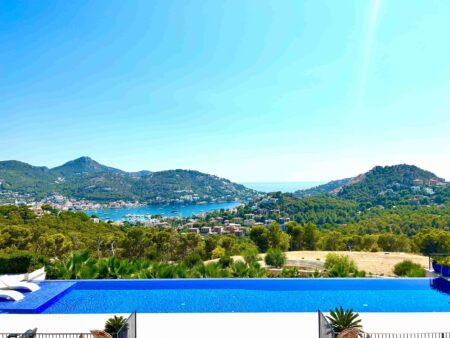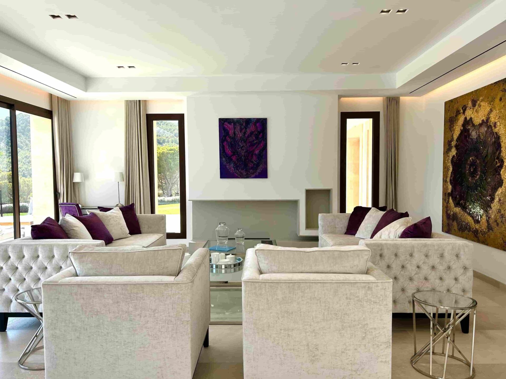 In einer von Natur umgebenen Oase oberhalb eines bekannten Hafens befindet sich dieses spektakuläre Anwesen mit Blick in Richtung Süden. Die Panoramaaussichten erstrecken sich weit über die Küstenlinie und das kristallklare Wasser. Für Liebhaber von Frieden, Abgeschiedenheit und der malerischen Landschaft von Mallorca ist dieses Juwel ein wahrer Traum. Über eine beeindruckend lange Privatstraße erreicht man dieses großzügige Domizil, das sich über mehr als 1.200 Quadratmeter erstreckt und in vier separate Einheiten unterteilt ist, darunter ein Haupthaus, mögliche Unterbringungen für Besucher und Mitarbeiter sowie ein Freizeitbereich mit Schwimmbad und Grillplatz. Mit einem Grundstück, das weit über 100.000 Quadratmeter misst, gibt es genügend Raum für zahlreiche Freizeitmöglichkeiten wie einen Helikopter-Landeplatz, Tennisanlagen und sogar eigene Laufpfade. In der Nähe findet man einen renommierten Yachtclub und eine lebhafte Strandpromenade mit einer Auswahl an Gastronomie und Boutiquen. Zu den luxuriösen Annehmlichkeiten zählen modernste Haustechnik, ein Weinkeller, Wellnessbereich, Innenpool, Fitnessstudio, Lift, ein 25 Meter Schwimmbad, eine geräumige Garage und weitere Annehmlichkeiten.