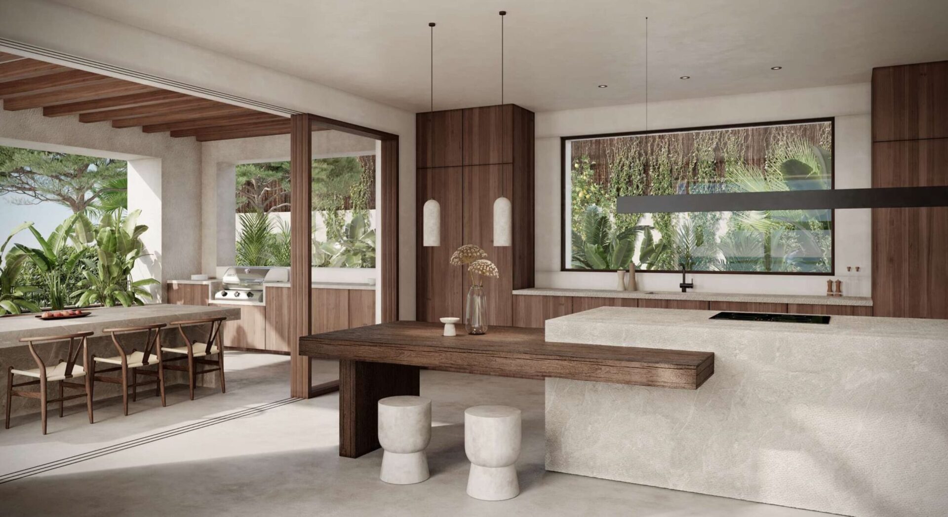 Im Inneren überzeugt La Sterna durch eine harmonische Kombination aus edlen Naturmaterialien, feinsten Massivholz- und Natursteinelementen sowie einer modernen, zeitlosen Farbpalette, die den mediterranen Charme stilvoll unterstreicht.