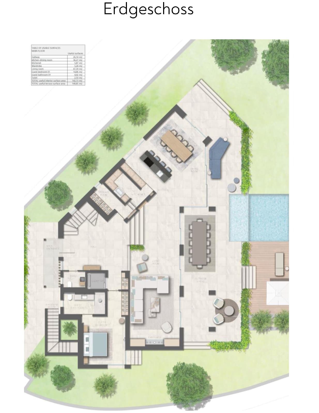 Großzügige Terrassenflächen