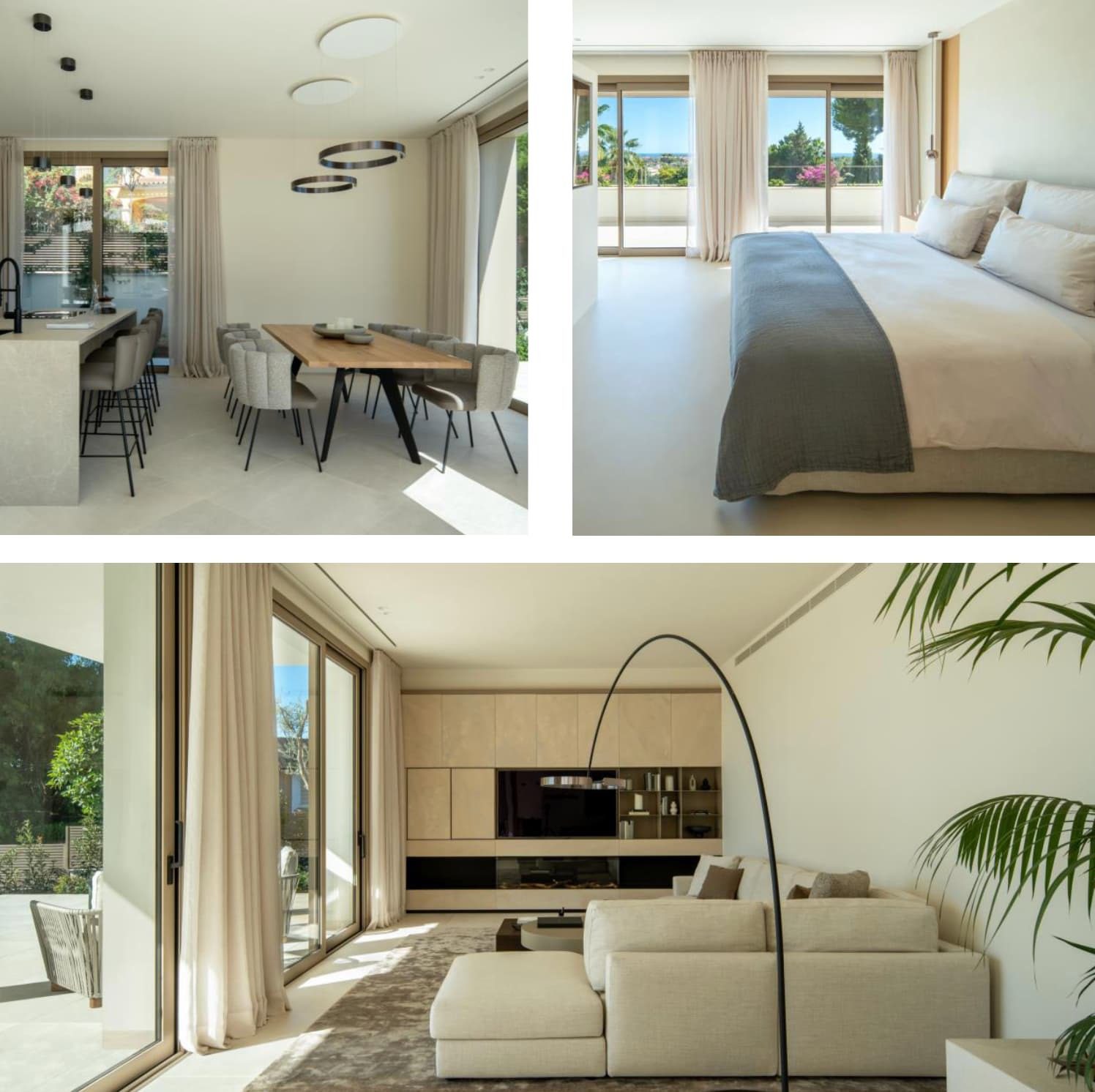 Großflächige Panoramafenster lassen den Blick frei über die Küste schweifen und fluten die Räume mit natürlichem Licht. Das Interieur kombiniert klare Linien, edles Holz, Naturstein und Leinen zu einem stilvollen Ambiente. Ein durchdachtes Lichtkonzept mit indirekter Beleuchtung, Smart-Home-Technologien sowie ein modernes Energiekonzept unterstreichen den hohen Wohnkomfort.