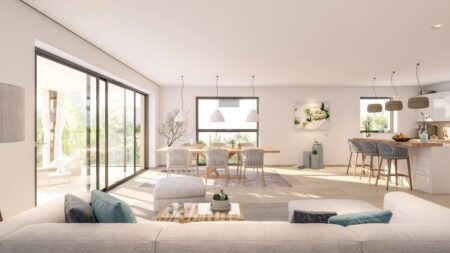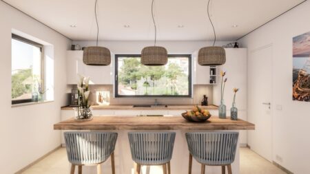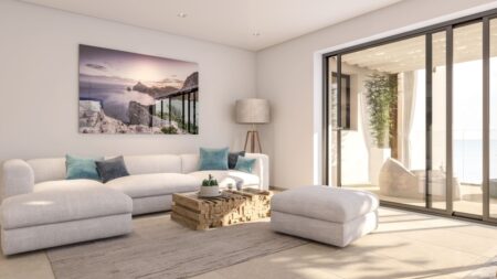 Die modern gestaltete Anlage bietet ein harmonisches Zusammenspiel aus mediterraner Bauweise, modernem Wohnkonzept, großzügigen Außenflächen und Panoramablicken – teils bis auf das Meer. Die Wohnungen verteilen sich auf ein Gartengeschoss, zwei Obergeschosse und ein Penthouse mit privater Dachterrasse.