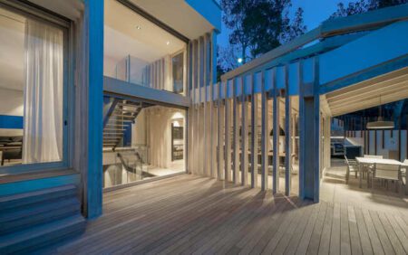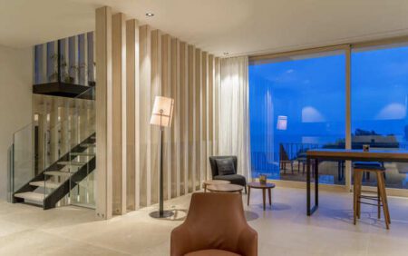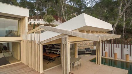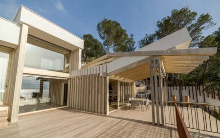 Die Villa Ca Prunera ist ein einzigartiges Luxusanwesen mit balinesischen Einflüssen, entworfen vom renommierten Architekten Alejandro Palomino. Mit ihrer offenen Architektur, der Verwendung von edlen Naturmaterialien wie mallorquinischem Naturstein, Holz und Glas, sowie dem Panoramablick auf die Bucht von Camp de Mar, gehört diese Immobilie zu den exklusivsten Residenzen im Südwesten Mallorcas.