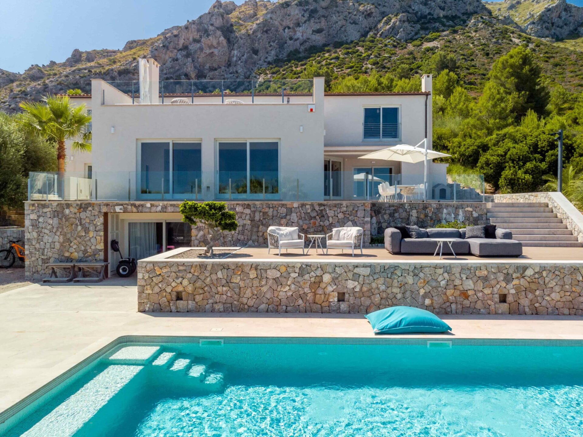 Moderne Materialen und große Fensterfronten, sowie maßgefertigte Einbauten sind hier so geschickt und rücksichtsvoll integriert worden, dass eine zeitlos elegante Finca mit einer repräsentativen Atmosphäre geschaffen wurde. Diese außergewöhnliche Finca befindet sich in einem umfangreich modernisierten bautechnisch einwandfreien Zustand. Als Bonus verfügt die Immobilien noch über eine Vermietungslizenz (ETV) mit 8 Schlafplätzen.
