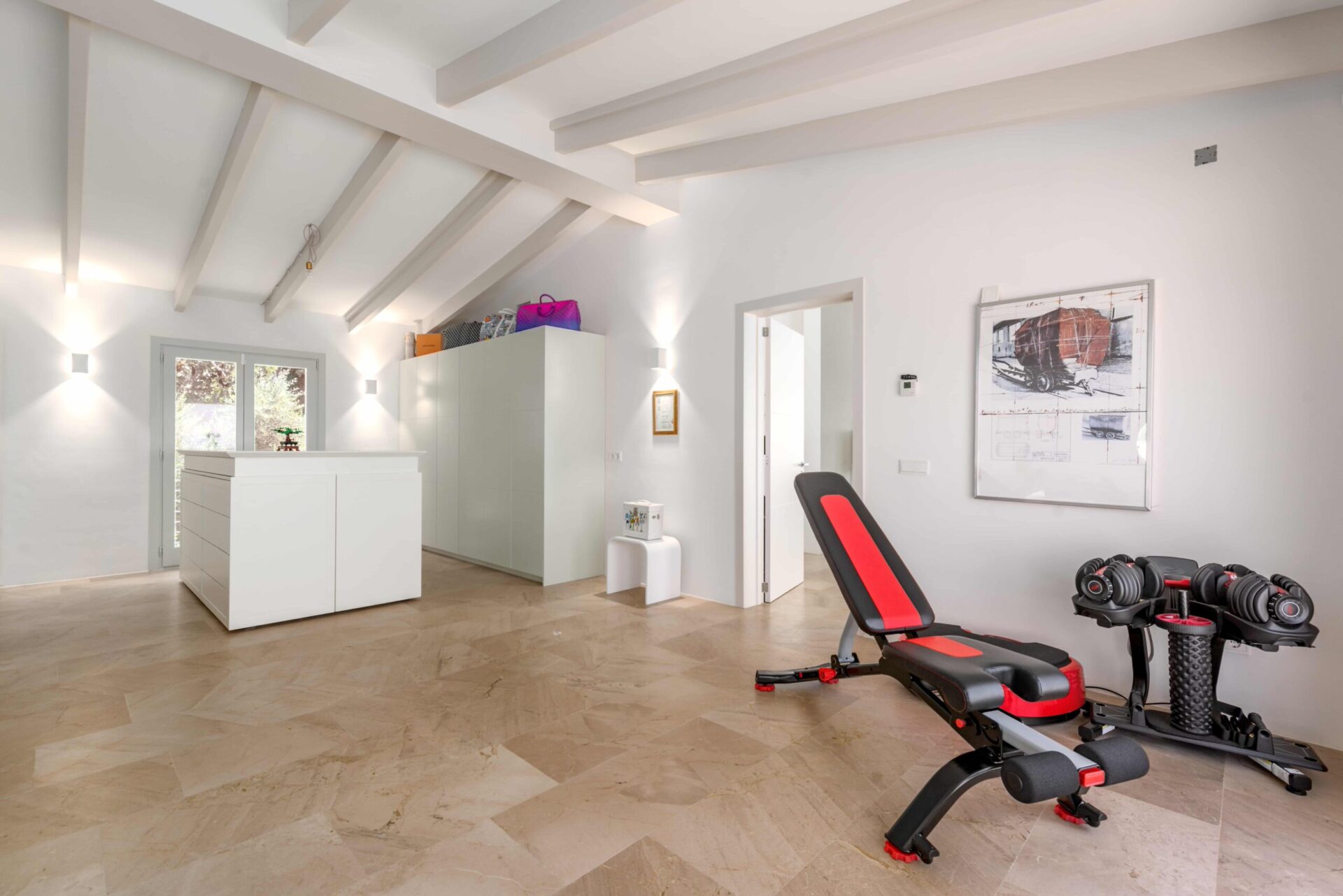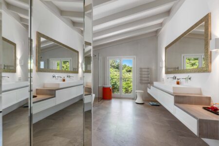 Im Obergeschoss finden Sie 2 weitere Schlafzimmer mit Bädern en Suite, einem weitläufigen Ankleidebereich mit Einbauschränken und einer großen Dachterrasse, die Sie begeistern wird. Der Ausblick ist in alle Richtungen umwerfend.