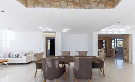 Das genehmigte Renovierungsprojekt verspricht ein elegantes Wohnkonzept, das moderne Architektur mit der natürlichen Schönheit der Umgebung harmonisch verbindet. Sechs großzügige Schlafzimmer und ebenso viele Bäder bieten ein opulentes Wohnerlebnis. Die offenen Übergänge zwischen Innen- und Außenbereich schaffen ein Gefühl von Weite und Freiheit, während das weitläufige Grundstück Privatsphäre und Rückzugsmöglichkeiten garantiert.