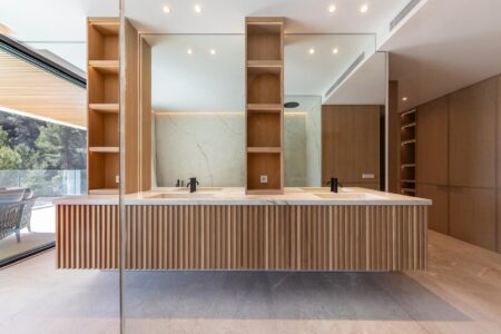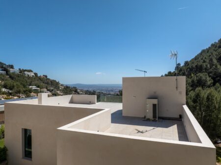 Diese herausragende Neubauvilla aus dem Jahr 2024 begeistert mit einem klaren, modernen Design, hochwertigster Ausstattung und einem unvergleichlichen Panoramablick auf die umliegende Landschaft von Son Vida – einer der exklusivsten Wohnlagen Mallorcas. Auf einem ca. 1.000 m² großen Grundstück bietet das Anwesen eine großzügige Wohnfläche von ca. 677 m², verteilt auf drei Etagen.