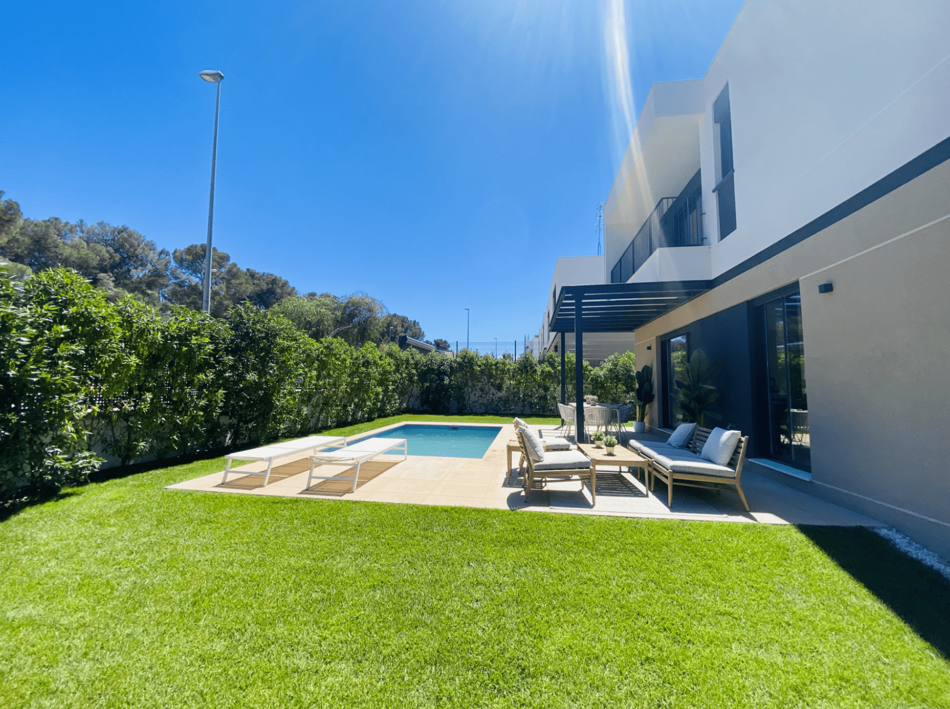 Diese moderne Doppelhaushälfte auf Mallorca bietet Ihnen und Ihrer Familie ein hochwertiges Zuhause in attraktiver Lage. Nur 20 Autominuten von Palma entfernt, besticht das Haus durch eine gehobene Ausstattung, energieeffiziente Bauweise und ein modernes, minimalistisches Design. Mit einer Wohnfläche von 133 m² auf einem 230 m² großen Grundstück überzeugt dieses Neubauobjekt mit funktionaler Raumaufteilung und großzügigen Fensterflächen, die viel Licht in die Räume lassen.