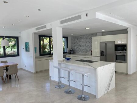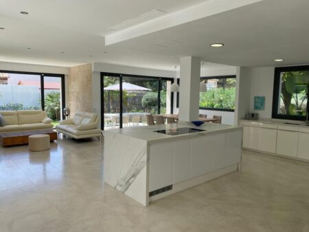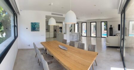 Im Jahr 2020 wurde diese exklusive Immobilie vollständig renoviert und mit erstklassigen Materialien sowohl im Innen- als auch im Außenbereich ausgestattet. Die Anwesenheit befindet sich in Santa Ponsa, einem beliebten Ort, auf einem etwa 998 m² großen Grundstück. Die großzügige Wohnfläche von ungefähr 384 m² erstreckt sich über zwei Etagen.