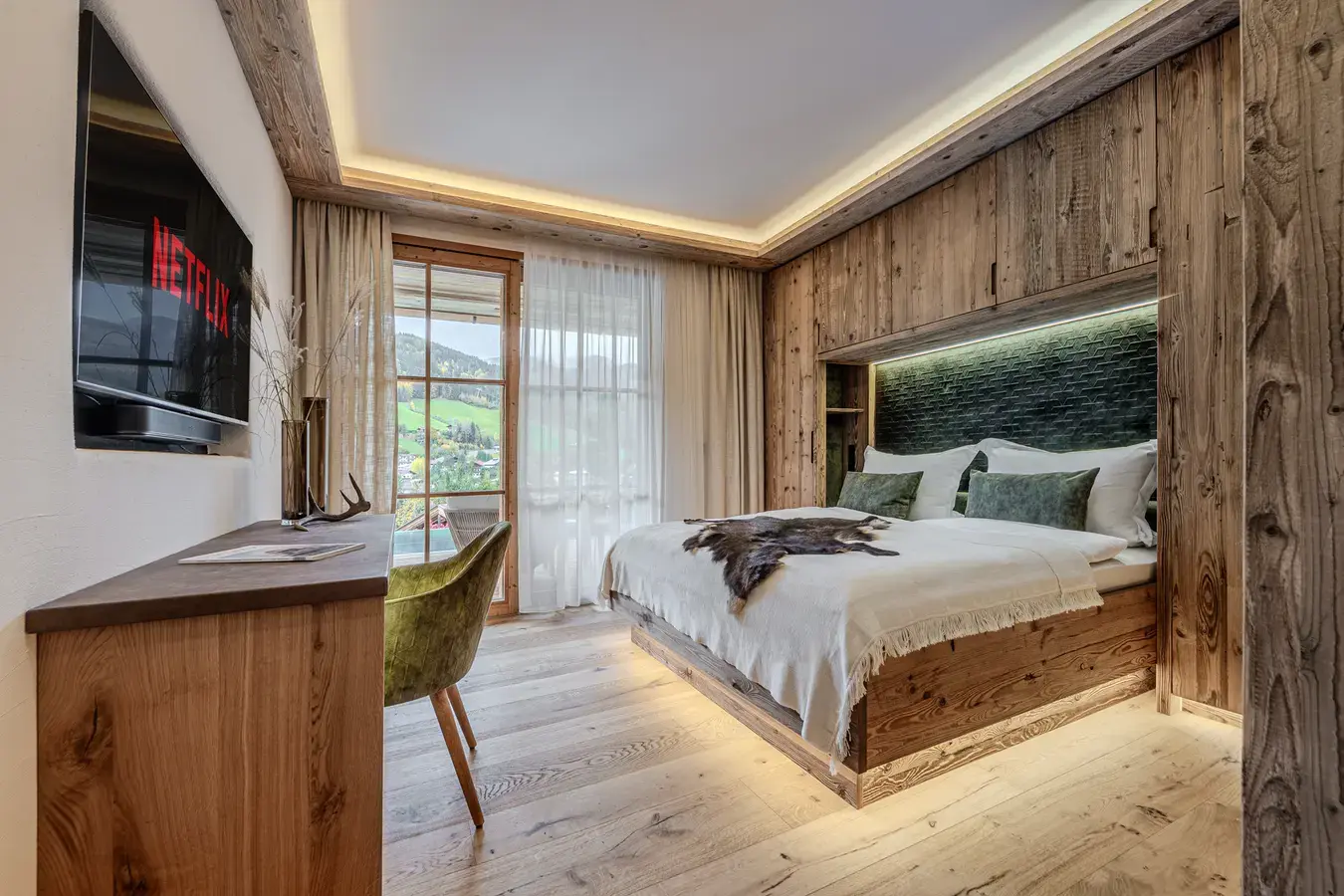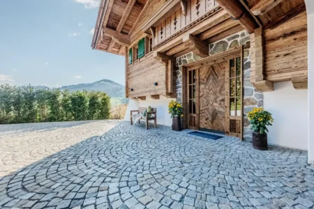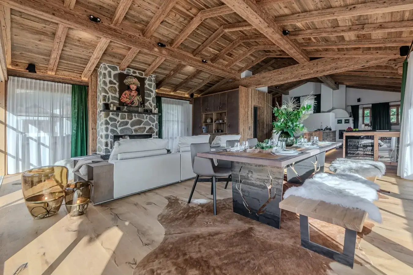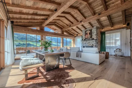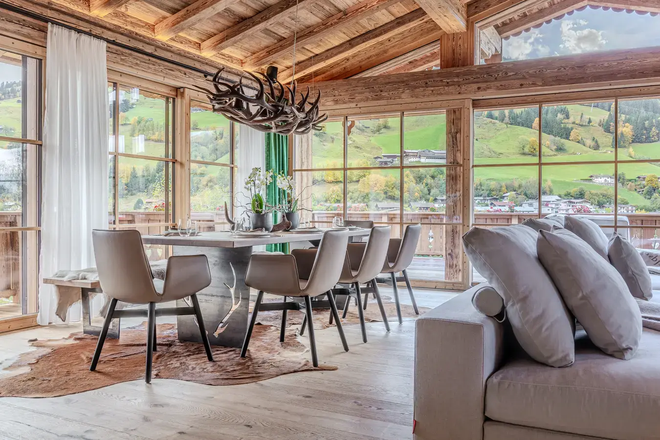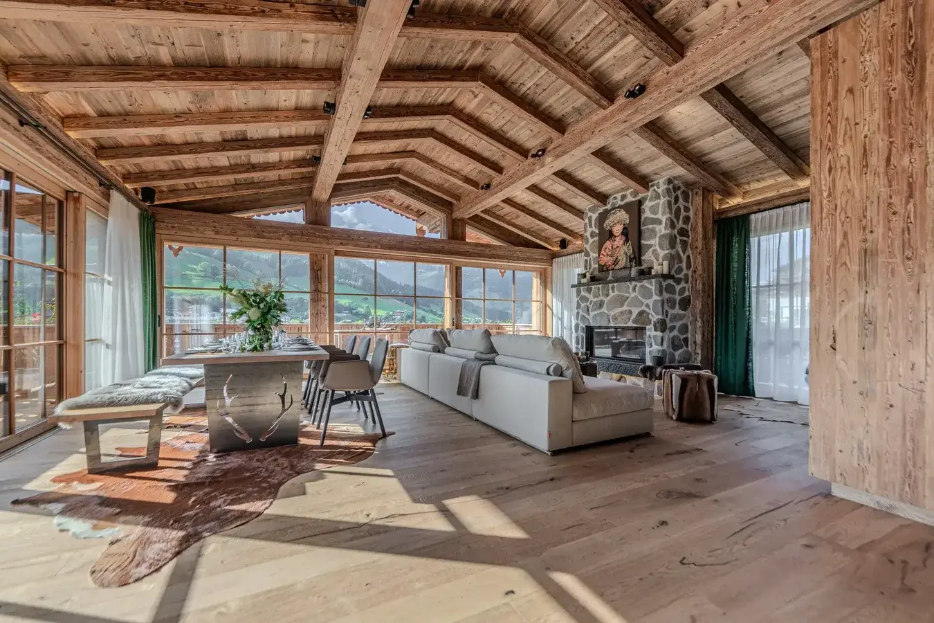 Das ca. 700 m² große Grundstück eröffnet ein einmaliges Panorama auf den Kitzbüheler Horn und den Großvenediger. Die Verwendung typischer Naturmaterialien wie Altholz, Naturstein und handgefertigter Ausstattungselemente verleiht dem Chalet eine authentische, zugleich elegante Ausstrahlung.