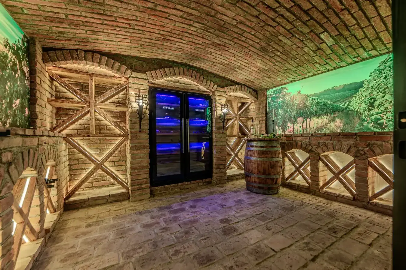 Weinkeller mit Naturstein, Temperaturkontrolle und Klimaschränken