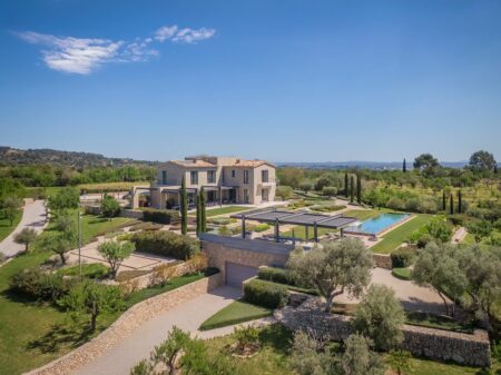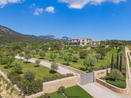Diese exklusive Finca in der begehrten Region Santa Maria im Herzen Mallorcas vereint architektonische Raffinesse mit atemberaubender Naturlage. Auf einem großzügigen Grundstück von 1,42 Hektar gelegen, thront das Anwesen auf einem Hügel und bietet einen spektakulären 360°-Panoramablick – über die Bucht von Palma, das Tramuntana-Gebirge und die umliegenden historischen Landgüter.