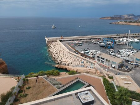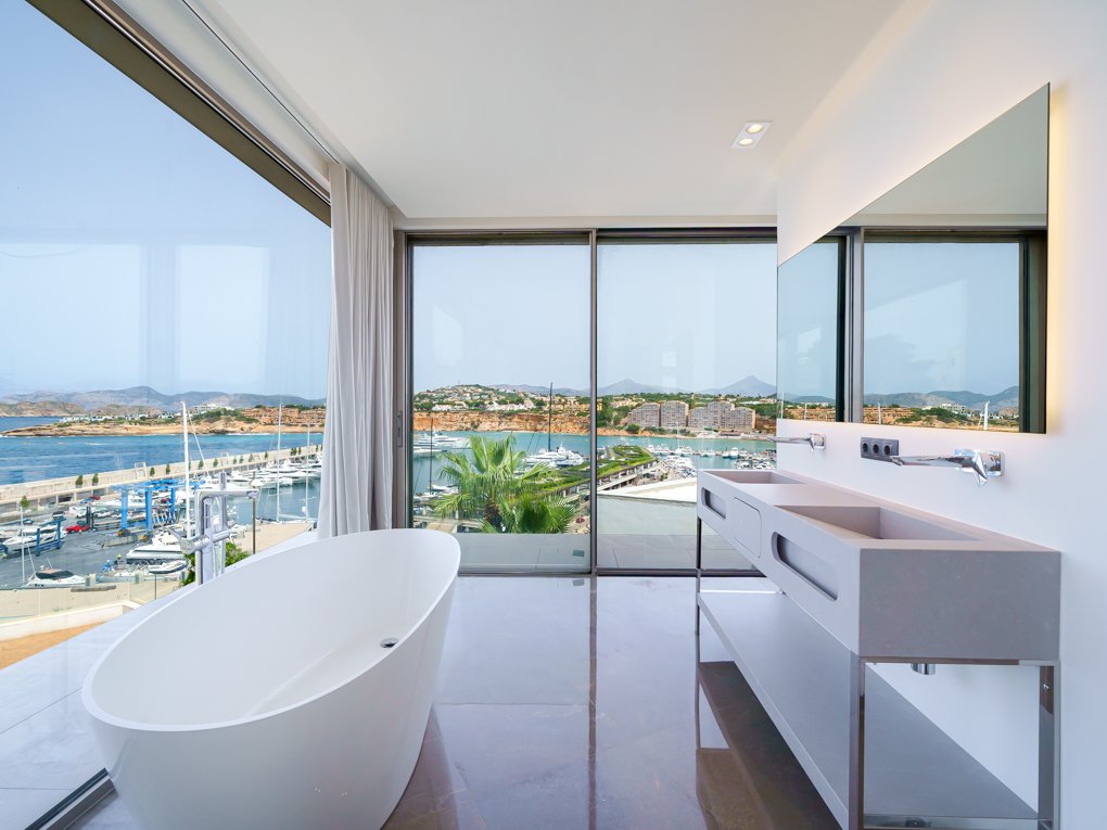 Die Dachterrasse mit ihrer Sommerküche, Bar und Whirlpool ist ein weiterer beeindruckender Ort zum Entspannen und bietet einen Blick, der sich nicht nur über den Hafen, sondern auch über die umliegende Landschaft erstreckt.
