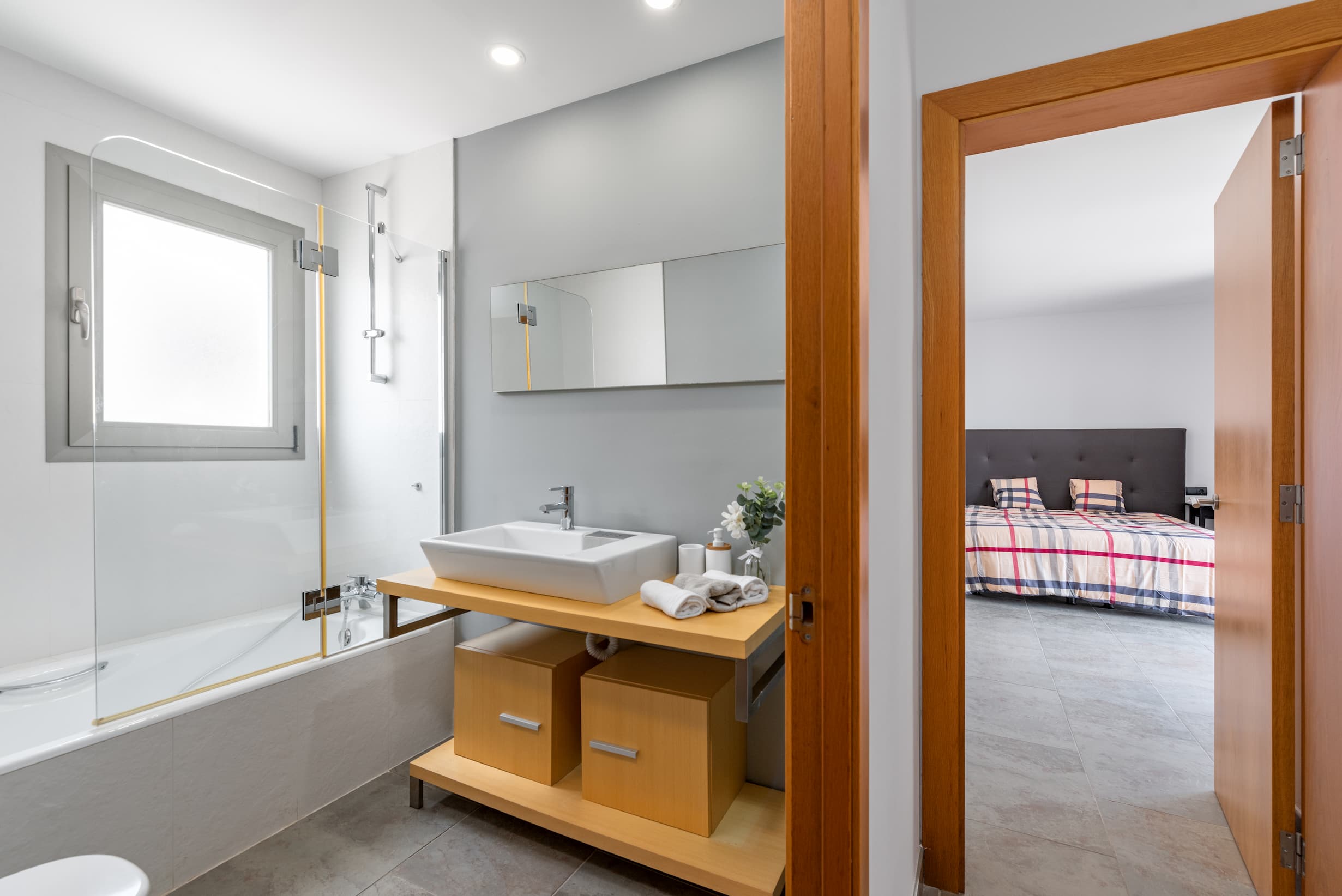 Das Haus verfügt im zweiten Obergeschoss über ein besonderes Highlight – ein geräumiges Zimmer, welches flexibel nutzbar ist. Hier befinden sich zudem ein Badezimmer und eine umfangreiche Terrasse mit Meerblick. Die großzügigen Fenster sorgen für eine lichtdurchflutete und freundliche Stimmung im ganzen Haus.