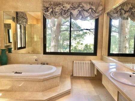 Zu vermieten. Einfamilienhaus auf einem Grundstück von ca. 2.500m² in Son Vida, ca. 350m² , Wohn-Esszimmer mit Kamin, voll ausgestattete Küche, 2 Doppelschlafzimmer mit Einbauschränken und Bädern, WC. Nebenwohnung von ca. 200m2, Wohn-Esszimmer, 3 Schlafzimmer, 2 Bäder en suite, Waschküche, Heizung, 3 Split-Klimaanlage. Teilweise möbliert.