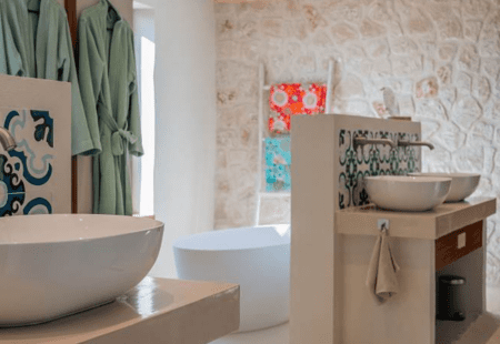 Hochwertige Materialien und Ausstattungen, darunter edle Böden, Designer-Bäder und maßgefertigte Möbel