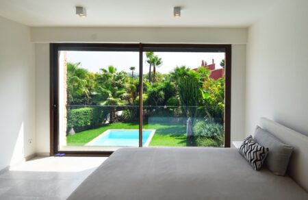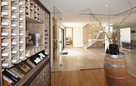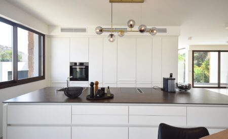 Die Villa wurde erst kürzlich fertiggestellt und erfüllt alle Ansprüche an einen perfekten Familienwohnsitz. Die Innenräume sind mit einer hochwertigen Einbauküche der Marke Leicht ausgestattet, inklusive Miele- und Bora-Einbaugeräten. Die Natursteinböden verleihen den Räumen ein warmes, elegantes Ambiente. Für Komfort sorgt die integrierte Daikin-Klimaanlage, die sowohl warme als auch kühle Luft liefert. Die Daikin-Fußbodenheizung wird durch eine Wärmepumpe betrieben und zusätzlich durch eine Solaranlage unterstützt. Die Immobilie verfügt zudem über eine Doppelgarage und bietet somit ausreichend Stellplatzmöglichkeiten.