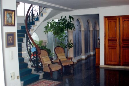 Diese nach Süden ausgerichtete Villa, erbaut im Jahr 1965, liegt in einem nahezu flachen, gut gepflegten mediterranen Garten in der Region Palma. Auf einem Grundstück von 2.350 m² bietet die Immobilie eine Wohnfläche von 700 m², die sich auf drei Etagen verteilt.