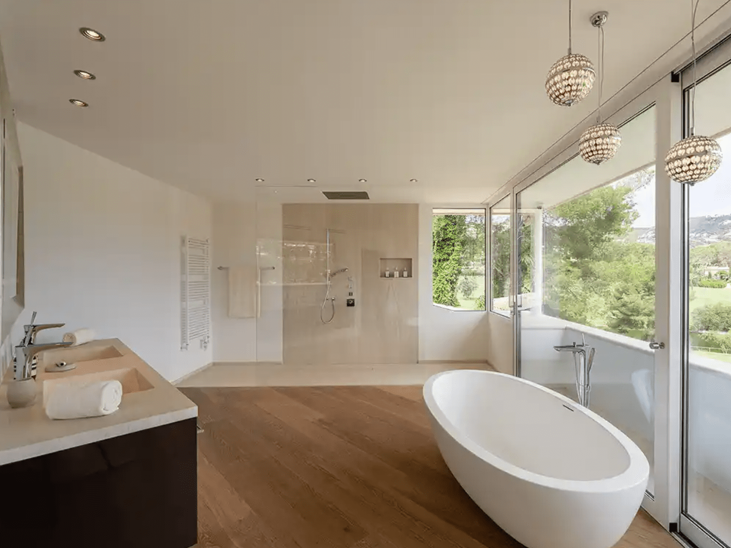 Die gesamte Villa ist mit modernster Technik ausgestattet, darunter Fußbodenheizung, die über eine Wärmepumpe betrieben wird, eine Klimaanlage für angenehme Temperaturen zu jeder Jahreszeit, ein Sonos-Soundsystem für perfekten Klang und ein Domotic-System zur einfachen Steuerung der Haustechnik.