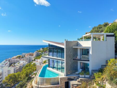 Diese moderne Luxus-Villa befindet sich in einer Top Lage an der Klippe an dem Hafen von Port Adriano und es wird Sie umhauen!